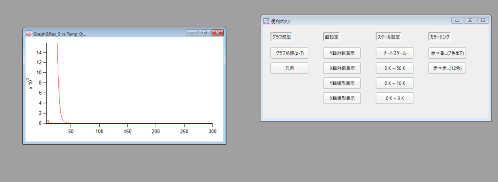 こんな風に対数にしてくれる。線形に戻したいときは「Y軸線形表示」ボタンを押せばよい。もちろんX軸にも対応している。